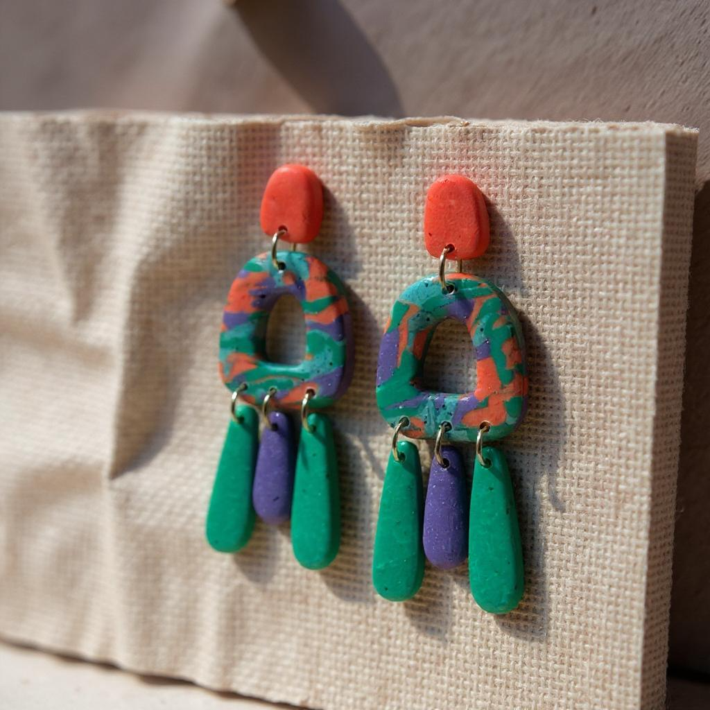 "إستمتعي بأجواء الصيف مع الحلقان الفريدة والخفيفة دي المصنوعة من طين البوليمر! بتصميمها الأزرق الجذاب، هي الإكسسوار المثالي لإطلالة صيفية أنيقة ومريحة."